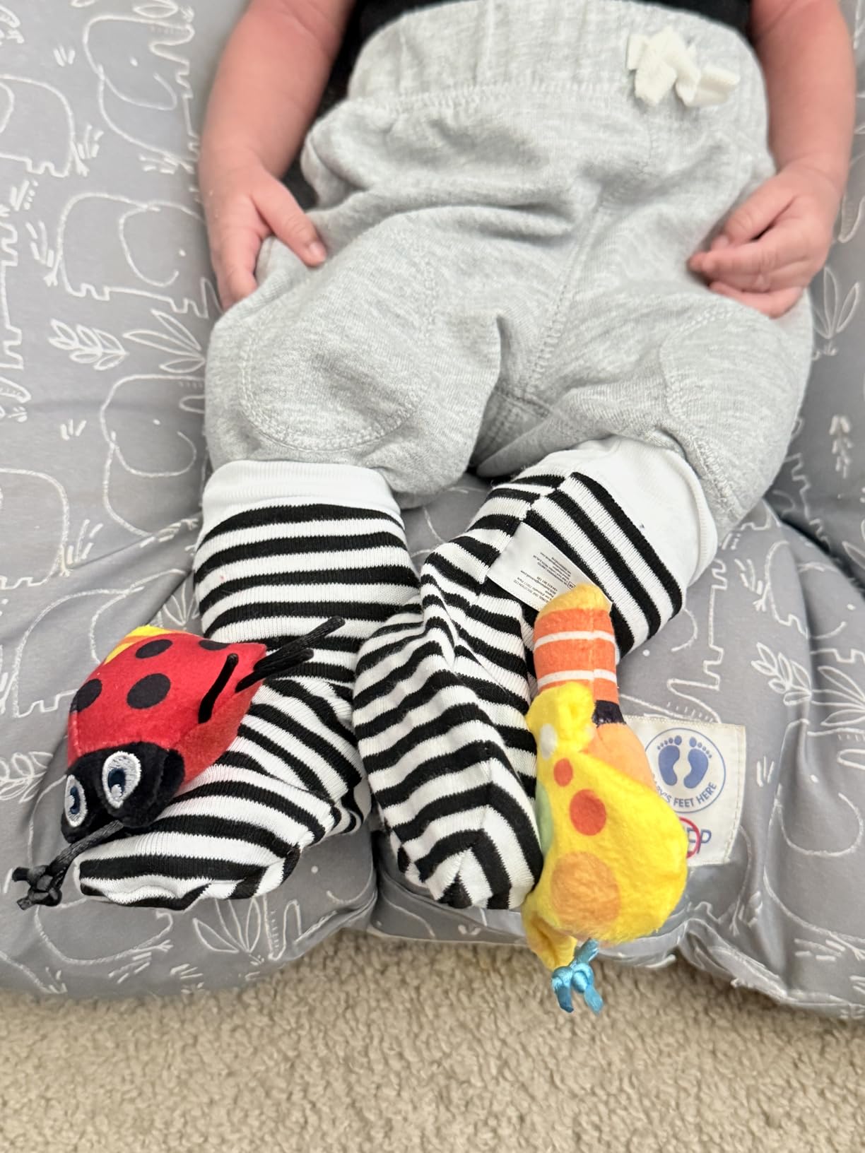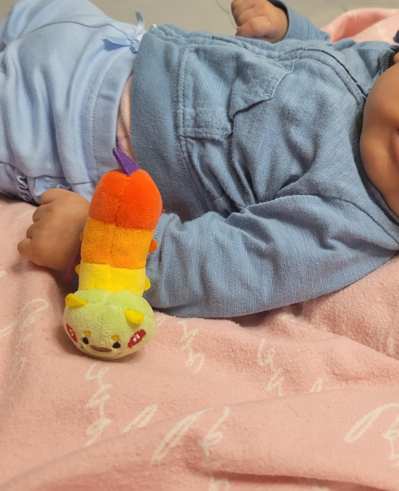 Ja! BabyBellz är gjord av mjuka, babyvänliga material och bjällrorna är helt inneslutna för att minimera risk. Produkten är testad för små barns säkerhet.